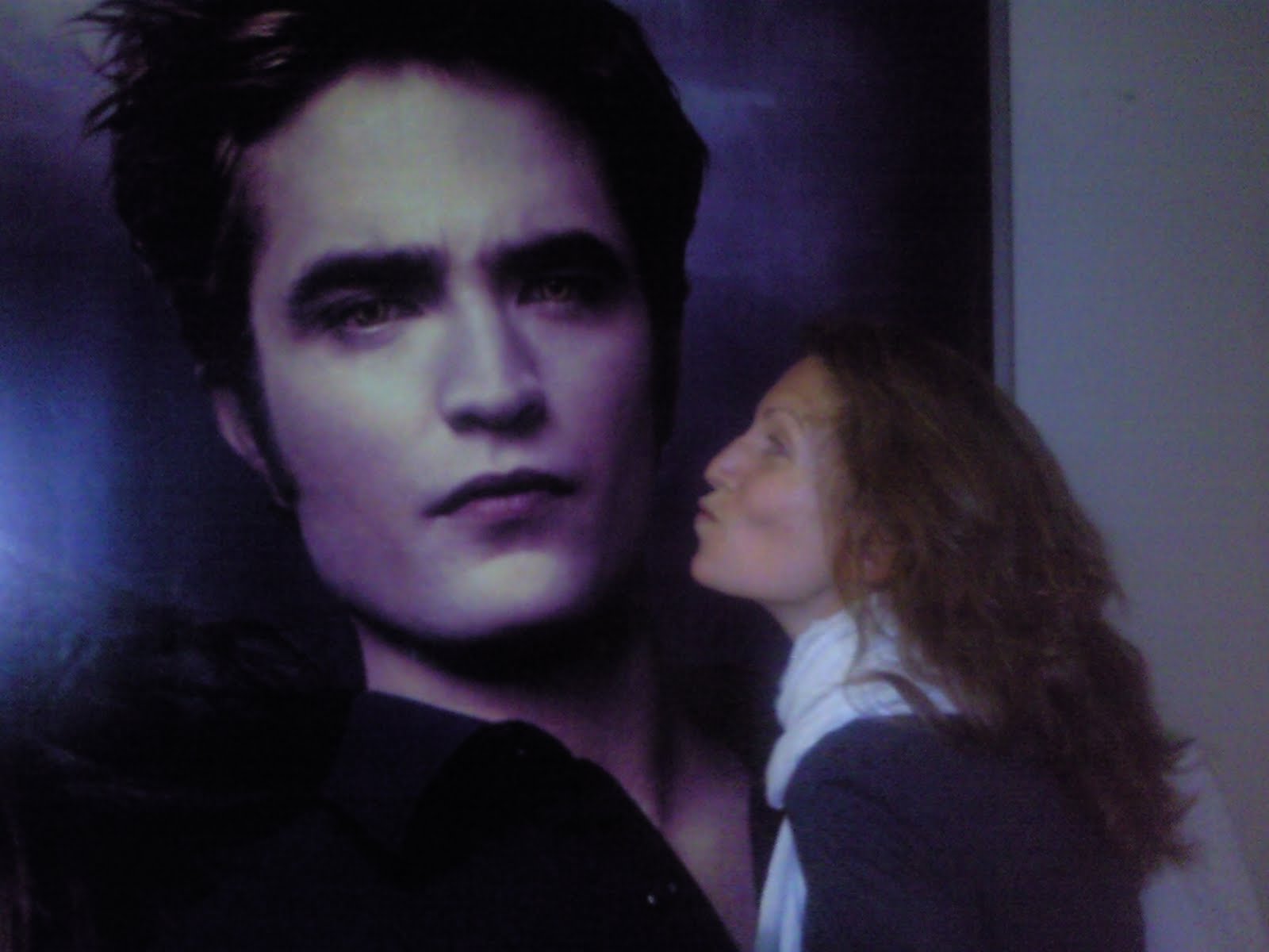Ora, passiamo al bello, proprio mercoledì scorso, mio ultimo giorno lavorativo, sono andata a vedere con due mie amiche, la prima del film Eclipse. Vabbè, cosa vi devo dire...sono tornata una teenager con l'ormone libero! Sto ancora ridendo...e non ero l'unica a fare quella foto da idiota! C'era la fila!!! E' stato davvero divertente e il film mi è piaciuto...va beh, va beh, lo sapete che mi è piaciuto perchè c'era lui!!